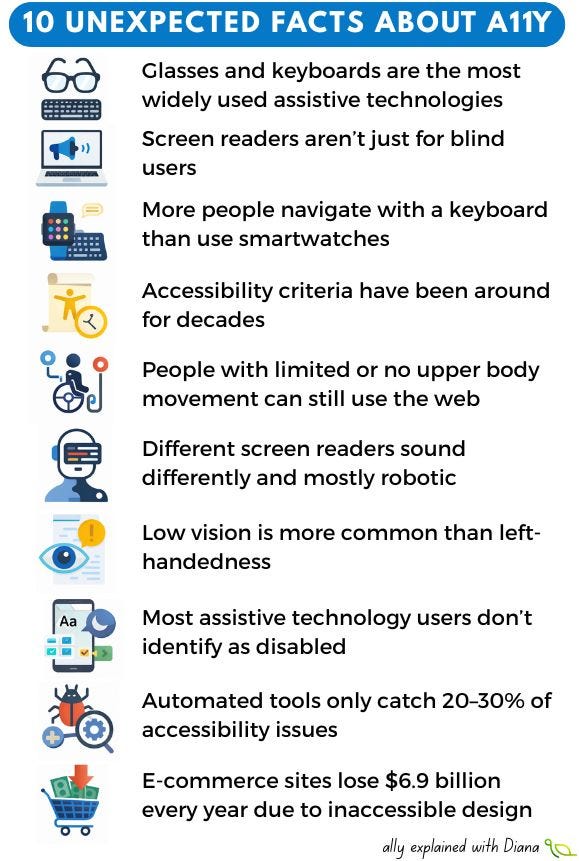 Web accessibility and the study of disabilities never stop surprising and inspiring me. Every fact reveals something new about how people interact with technology and how thoughtful design can make a real difference. Which fact inspires you the most?